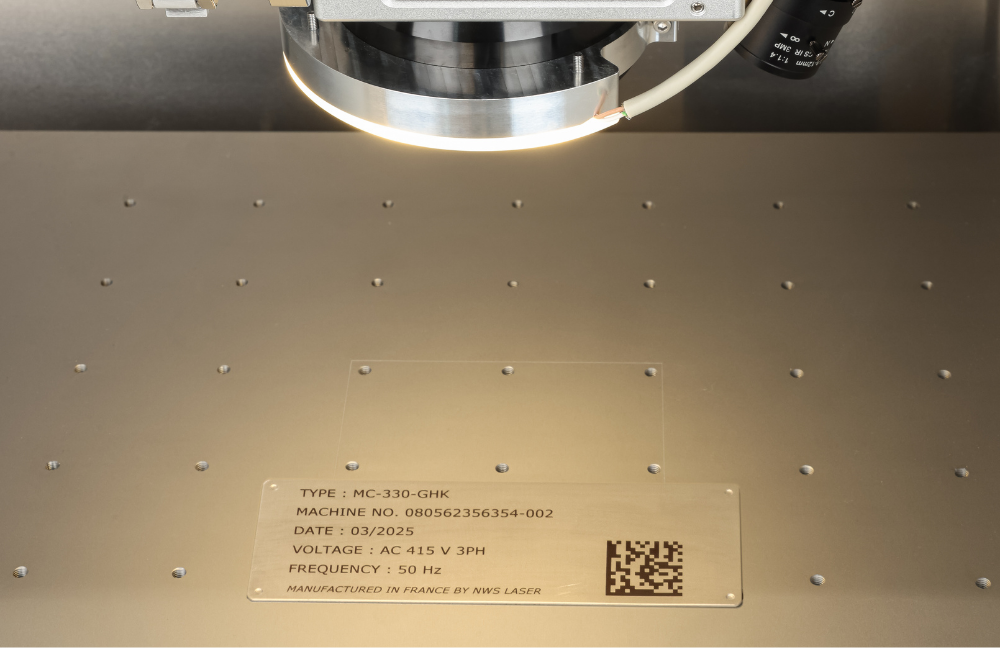 Le laser à fibre garantit une grande durée de vie et un entretien très réduit, sans calibration, sans préchauffage. Le temps de cycle pour graver une plaque de firme est très court (quelques secondes) avec un rendu parfait.